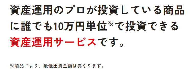 最低投資金額については、商品によって異なると書いてあるので、今後下がると投資ハードルが下がったファンドが出るといいなぁと期待したいところですね★